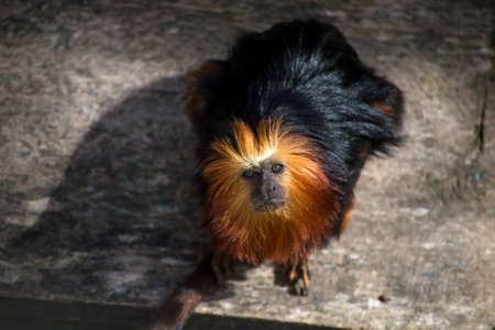 A closeup of the lion tamarin. The maned marmoset, genus Leontopithecus.