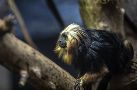 Portrait of Tamarin with golden head standing on tree branch