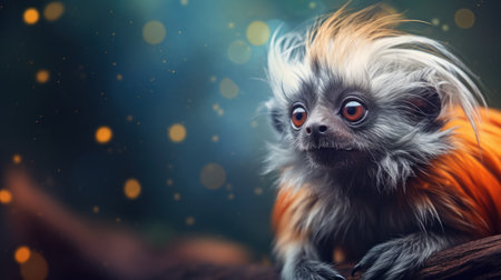 Cute little lion tamarin on a dark background with bokeh