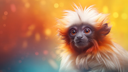 Cute little lion tamarin on colorful background with bokeh