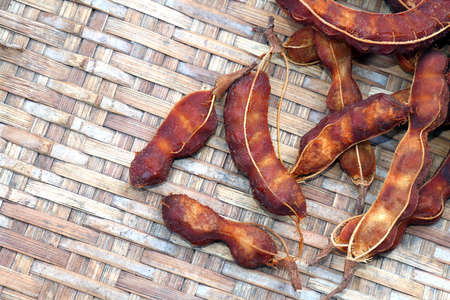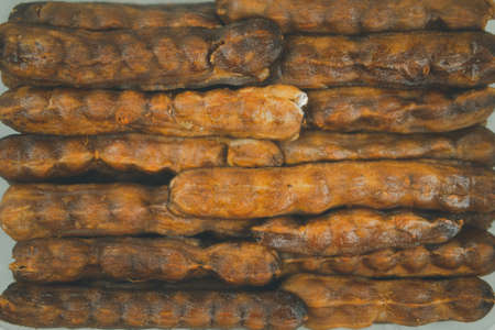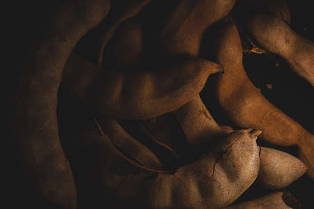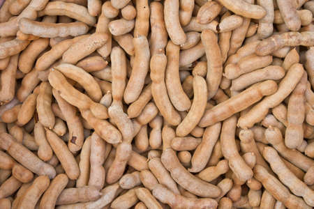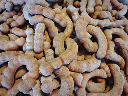 Tamarind is a food type of fruit. It is brown in color and has a sweet and sour taste. Delicious as a snack, nourishing, healthy, vitamin C. Seeds are dried together and can be used as a background.