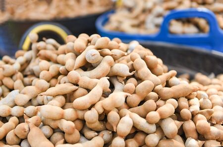 Pile of sweet tamarind at the Petchabun's market, famous fruit of Petchabun province of Thailand