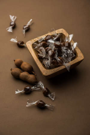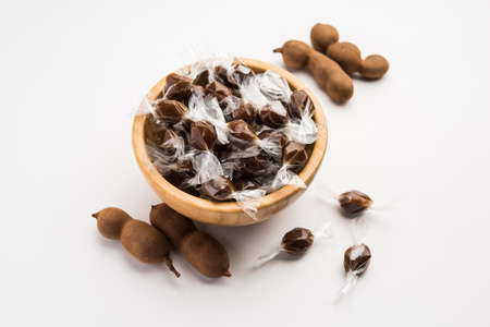 Tamarind Candy or Imli pops is made of Tamarindus indica pulp and sugar or jaggery and wrapped in little plastic wrappers twisted at each end