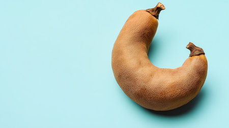 A unique, curved tropical fruit lies on a bright blue background, highlighting textures and shapes. Perfect for concepts of health and nutrition.
