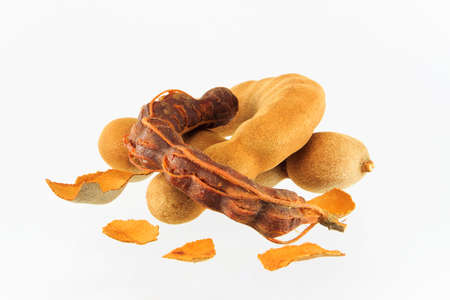 Tamarind, ripe exotic tropical fruit isolated on white background, healthy food, diet nutrition