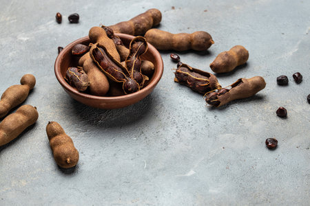 Tamarind the result is a long sheath with a curved neck.Raw tamarind with copy space