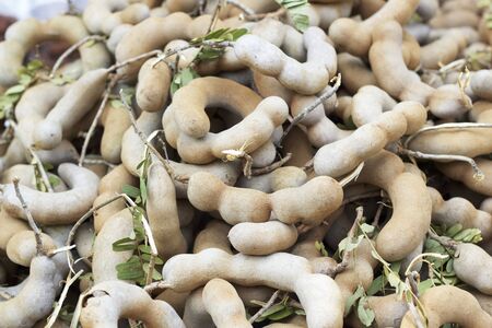 Pile of sweet tamarind for sale in the market fruit. Tamarind background