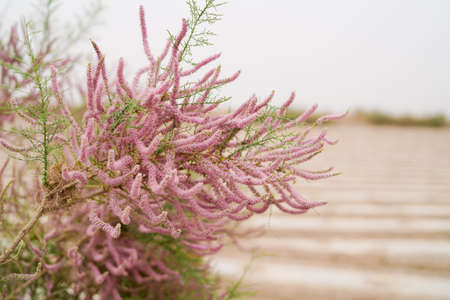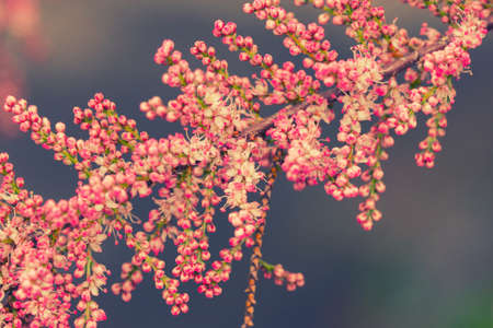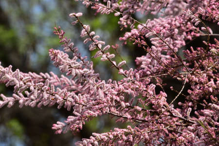Tamarix chinensis or chinese tamarix pink flowers blooming in spring