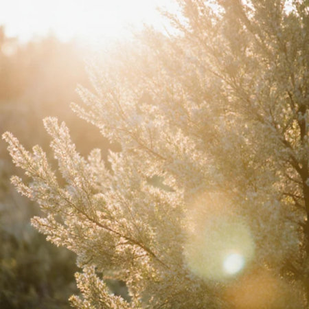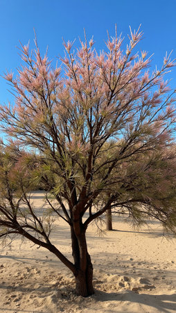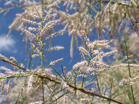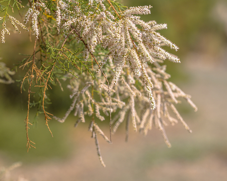 Blossom of Tamarisk tree (Tamarix smyrnensis) on Peloponnesos coast in Greece.