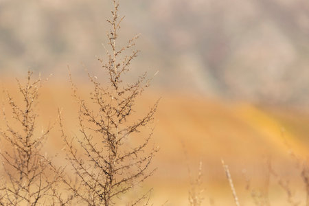 A shallow focus shot of Prickly Russian thistle plant in the field