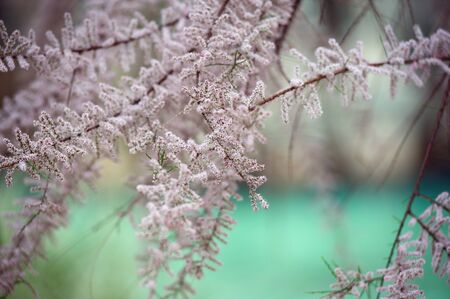 Blossoming Tamaricaceae branches. Tamarix meyeri boiss.