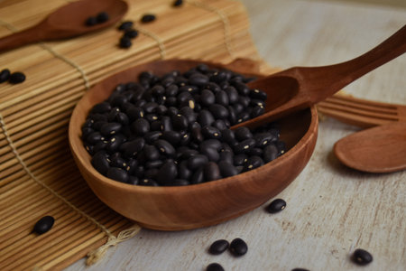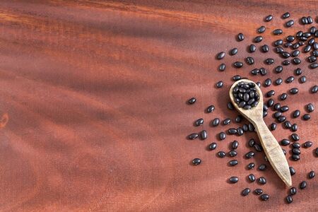 black bean on wooden spoon healthy concept