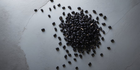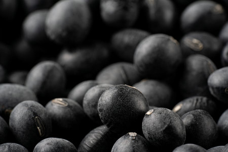 Macro shot capturing the rich textures of raw black beans, perfect for culinary backgrounds