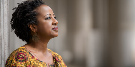 Close up portrait of a beautiful african american woman smiling outdoors