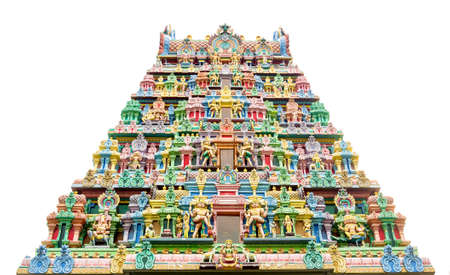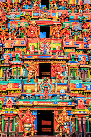 Colorful carved walls of the temple in Tamil Nadu state, South India.
