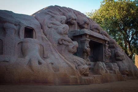 View of the Tiger Cave which is a rock-cut Hindu temple complex in Mahabalipuram, India