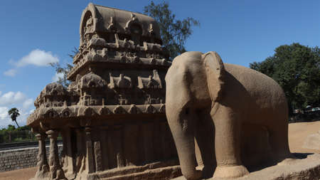 Bull statue at Five rathas temple complex in Mamallapuram, Tamil Nadu, India