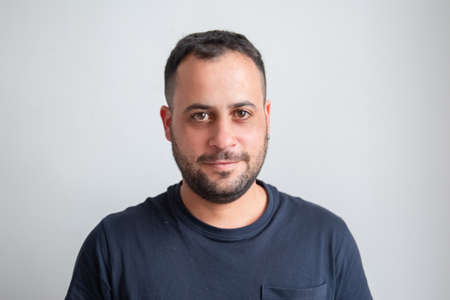 Portrait of male latino model over a gray background