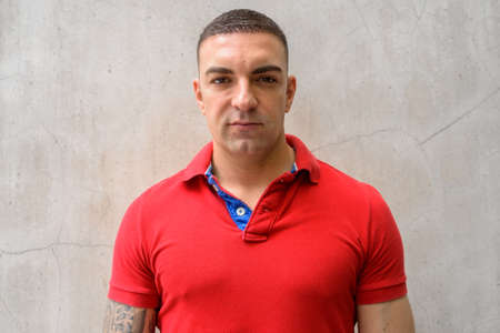 Face of handsome man against concrete wall