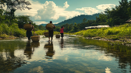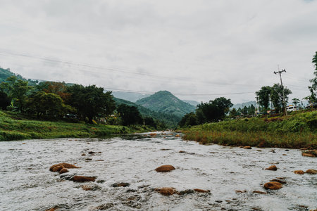 Small river comes from mountains high to a peaceful village in southern part of Thailand.
