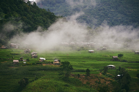 The morning mist at Pa Bong Piang rice field in Chiangmai, Thailand