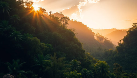Sun rise on the mountain at Mae Hong Sorn in Thailand.