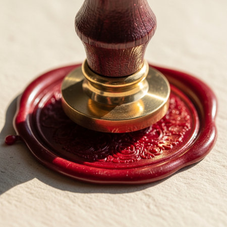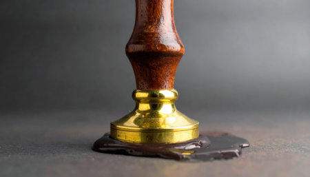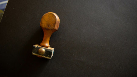 A beautifully crafted wooden stamp rests on a document, symbolizing approval and authenticity in professional settings. Perfect for themes of organization and communication.