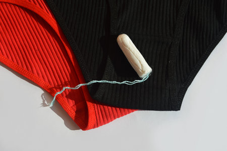 Menstrual tampon and women's underwear on a white background