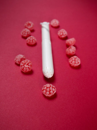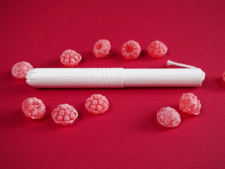 Tampon with red candies on red background