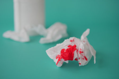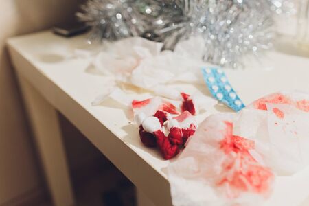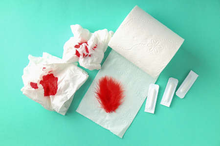 Blood on the tissues on light green background
