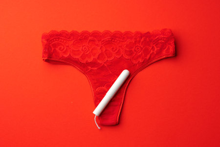 Ladies feminine hygiene product on a red background