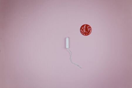 Medical female tampon on a pink background. Hygienic white tampon for women. Cotton swab. Menstruation, means of protection.