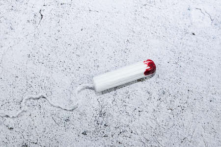 Menstrual used tampon with a drop of blood.Concept on the theme of menstruation.