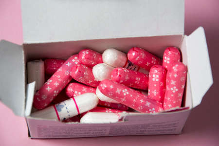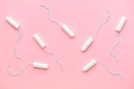 Feminine hygienic tampons on pink paper background