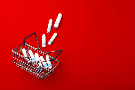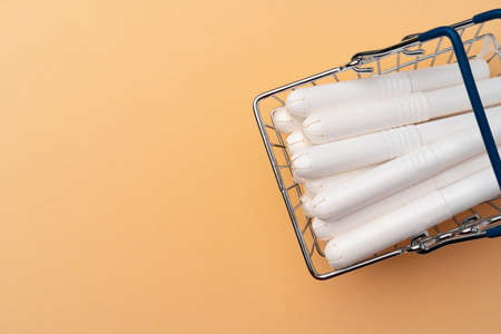 Shopping cart with medical tampons close up