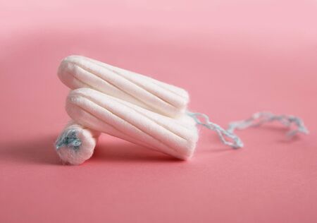 Tampons on pink background for female personal hygiene and protection during menstruation period cycle