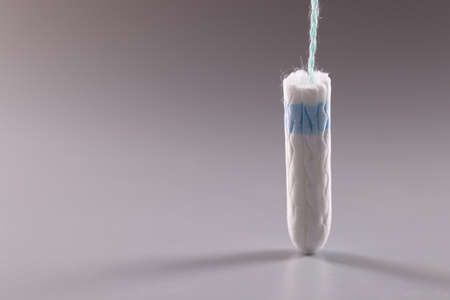 Menstrual cotton swab on gray background. Hygiene and protection concept