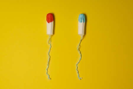 Menstrual tampons on yellow background