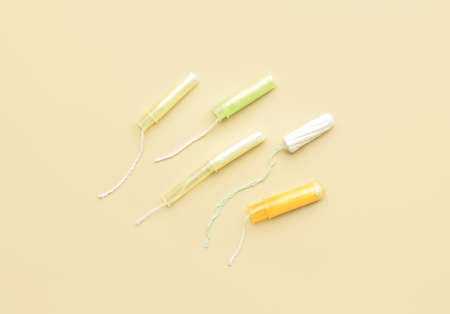 Tampons for feminine intimate hygiene on a beige background. Menstruation, critical days, female cycle