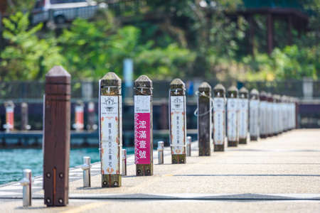NANTOU, TAIWAN - MARCH 28 : Pier pillar for boats at the lake of famous attraction, Sun Moon Lake at Taiwan on March 28, 2017 in Nantou county, Taiwan, Asia.