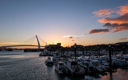 New Taipei City, Taiwan - circa August 2015: Lover Bridge of Tamsui in New Taipei City, Taiwan at sunset