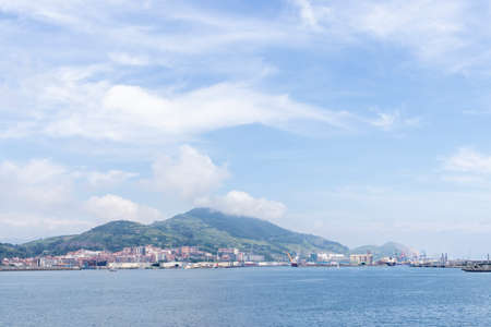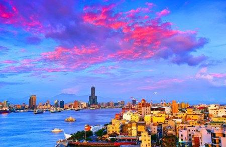 Kaohsiung, Taiwan - April 29, 2019: Cijin Island skyline. Scenic view of Kaohsiung Harbor and the Cijin Ferry Pier. Amazing cityscape.Taiwan is a popular tourist destination of Asia.
