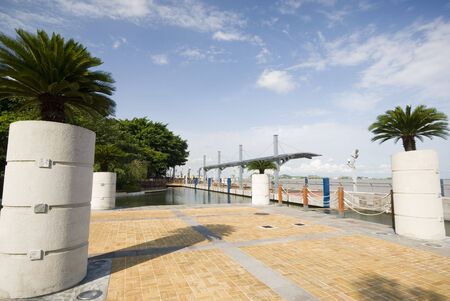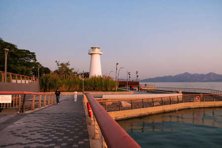New Taipei, Taiwan 31 May 2022: Riverside walking path in Bail of Taiwan