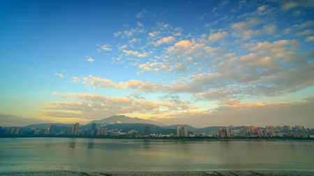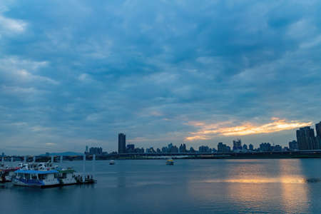 Sunset river landscape along the Dadaocheng area at Taipei, Taiwan