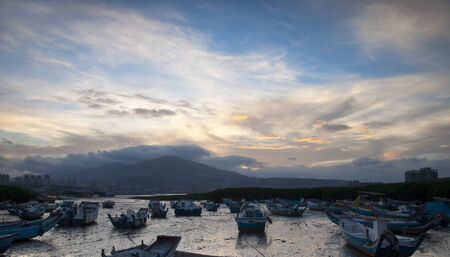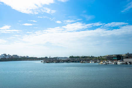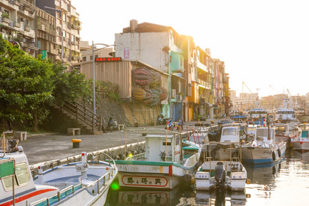 View of First Tamsui Fishing Harbor in New Taipei City, Taiwan. it's one of the attractions on the north coast and Guanyinshan national scenic area.