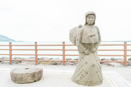 JEJU, KOREA - JULY 9, 2017: statue of Haenyeo at Hyeopjae Beach in Jeju Island, South Korea