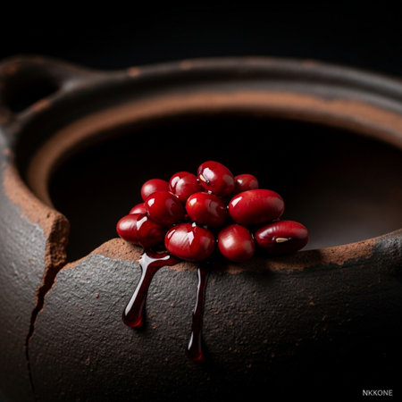 Shiny black kuromame beans, a traditional Japanese New Year's dish, are meticulously arranged in a decorative lacquered box.