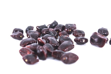 Chirmi beads. Selected focus. Centred focus. White backgrund.