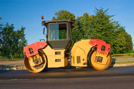 machine for creating an improved surface on the road next to the roller. devices for road construction. urban landscape, highway creation.