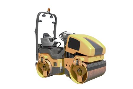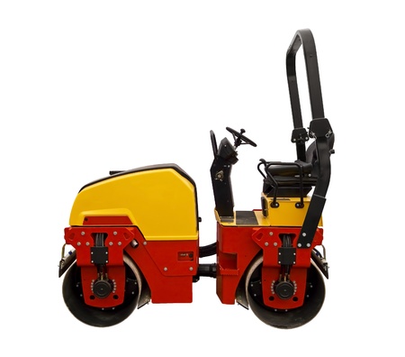 small motor vehicle or mini heavy steel roller wheel or steamroller for road making or street - highway construction isolated on white background with clipping path